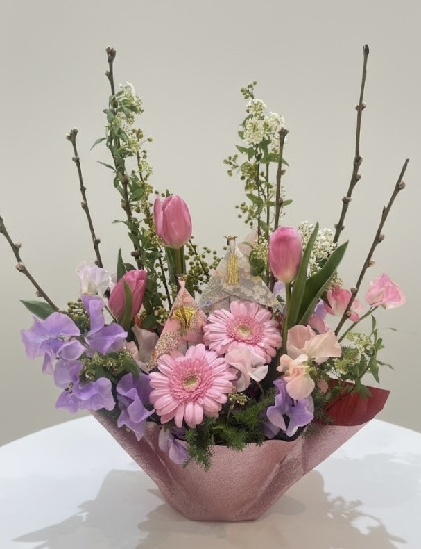 2月各務原フラワーデーは生花ひな祭りアレンジメントのワークショップを開催